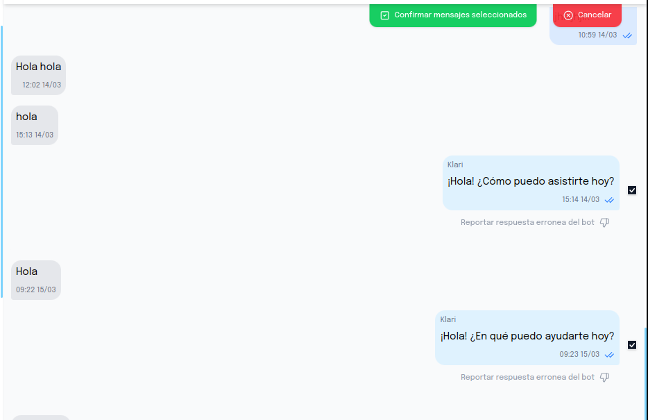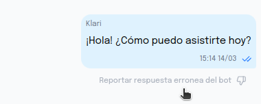 Reportar respuestas incorrectas del bot permite a Klari identificar errores en sus respuestas y tomar medidas correctivas para mejorar su desempeño. Con esta retroalimentación, se pueden ajustar modelos, optimizar procesos y garantizar una mejor experiencia para los usuarios.