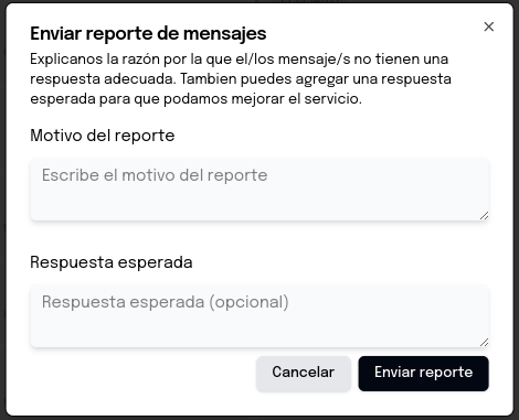 Reportar respuesta errónea del bot